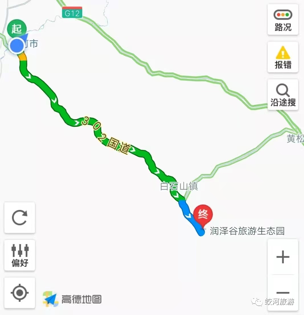 2、吉琿高速G302黃松甸出口到白石山鎮沿南小屯加油站向南400米左轉進入永青村1隊,車上行1公里即到潤澤谷旅游生態園。(南小屯加油站附有指示牌)