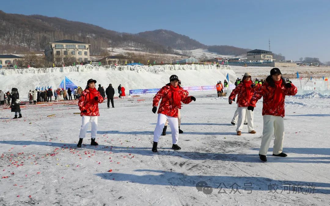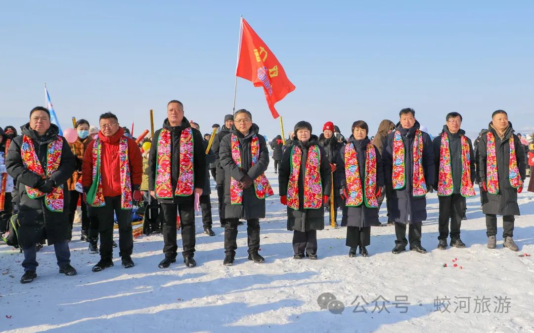上午10時18分,吉林蛟河松花湖冰雪漁獵文化旅游節正式啟動,用冰打造的船型舞臺美輪美奐,現場游客伴隨著動感的旋律,在冰天雪地里盡情舞動,肆意揮灑豪邁激情,為活動注入了活力與豪情。與會領導嘉賓以鳴鑼起網的形式宣布冬捕活動開始。