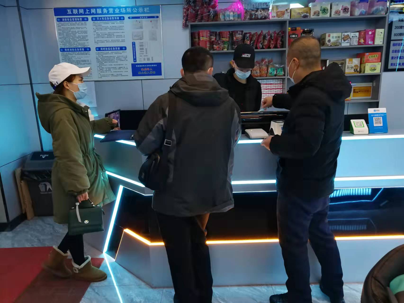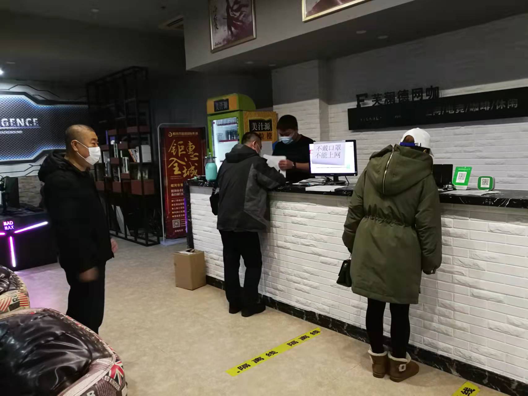 市文廣旅局、文化市場綜合行政執(zhí)法大隊到市區(qū)網(wǎng)吧進(jìn)行檢查疫情防控工作,檢查中發(fā)現(xiàn)有個別上網(wǎng)人員未戴口罩,責(zé)令網(wǎng)吧人員立即提供口罩,并警告網(wǎng)吧人員需要及時關(guān)注和督促上網(wǎng)人員安全佩戴口罩,檢查中發(fā)現(xiàn)的問題均立即整改完畢。