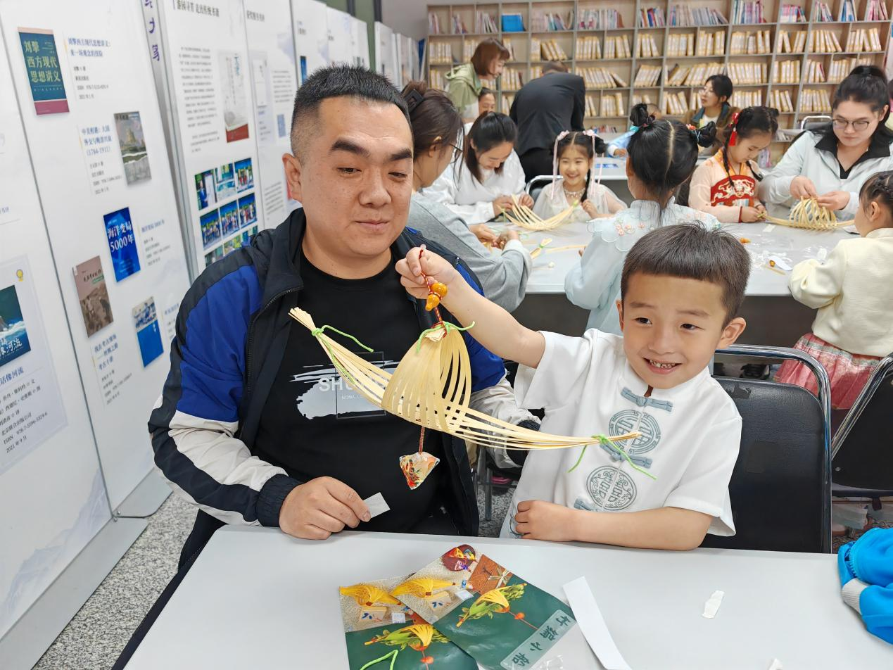 (2)“艾香千里 端午安康”竹編龍舟掛件手工制作活動。6月6日,在蛟河市圖書館舉辦,手工藝志愿者通過與游客、群眾及小朋友現場互動,讓參與者體驗到了傳統竹編技藝的魅力,感受到了端午節的濃厚氛圍和文化內涵。